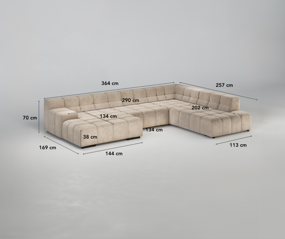 The Accardi is bold, flexible, and full of character. With its quilted grid look, deep seats, and adjustable backrest, it combines structure and comfort. A sofa that adapts to your space while remaining as soft as a cloud.
